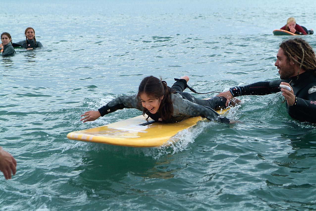 La playa de Málaga realiza una experiencia pionera de iniciación al surf para niños afiliados