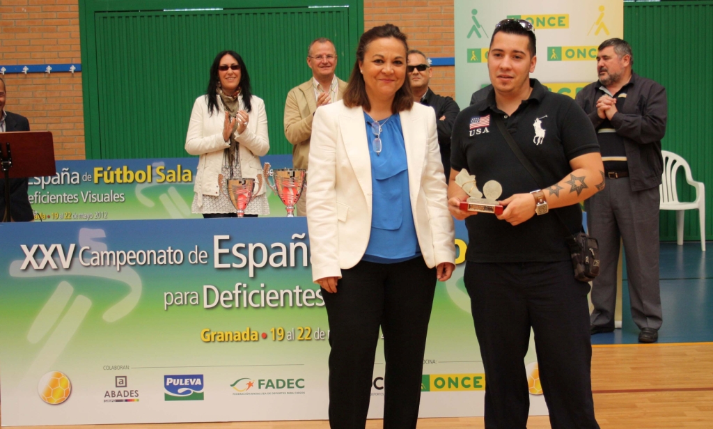 XXV Campeonato Fútbol Sala Madrid – Sevilla 08 5 de junio de 2012 maría Dolores Martín entrega al equipo de Baleares el premio a la deportividad