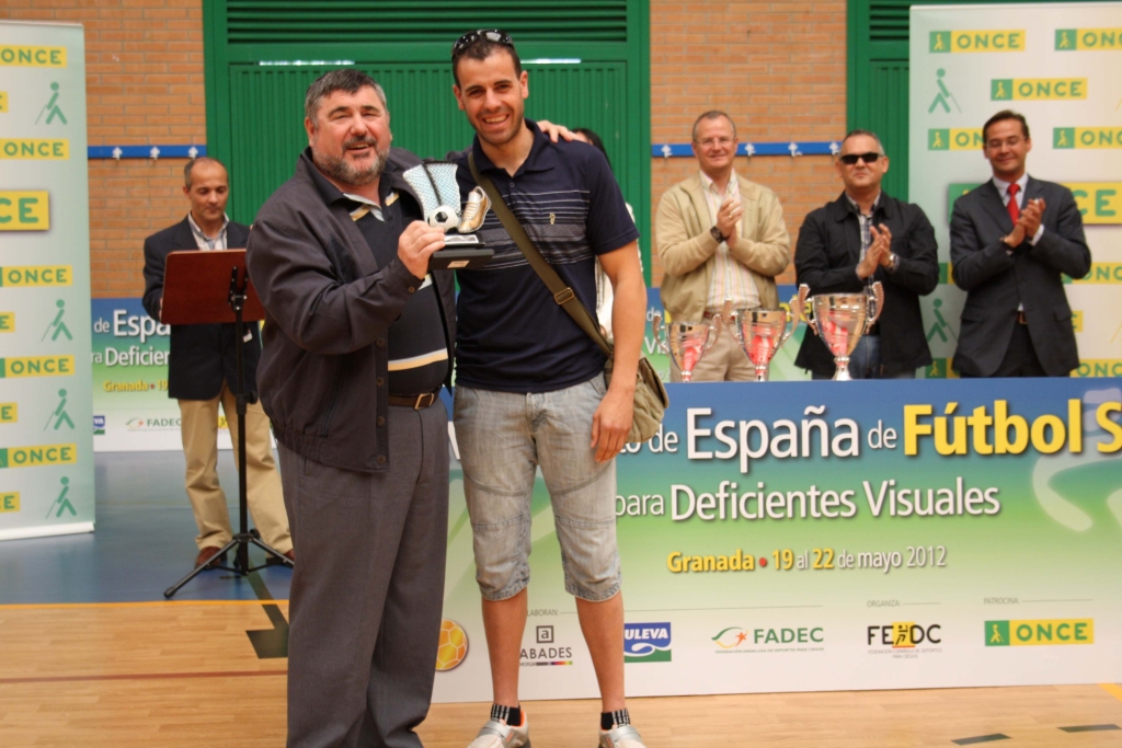 XXV Campeonato Fútbol Sala Madrid – Sevilla 10 5 de junio de 2012 Alberto Morillas entrega el premio de máximo goleador a David Molina, del Baleares