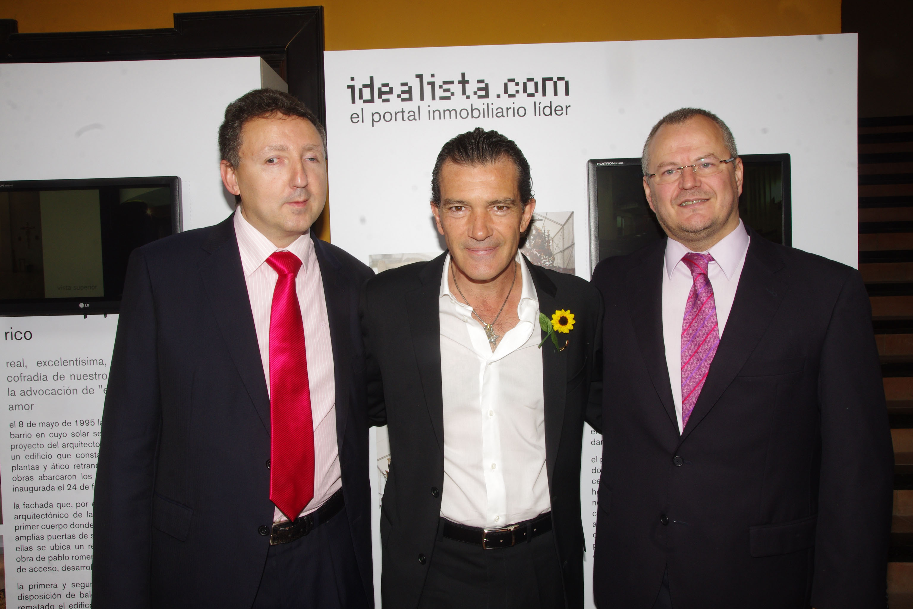 De izquierda a derecha, el director de ONCE Málaga, Cristóbal Martínez; el presidente de la Fundación Lágrimas y Favores, Antonio Banderas; y el delegado territorial de la ONCE en Andalucía, Ceuta y Melilla, Patricio Cárceles
