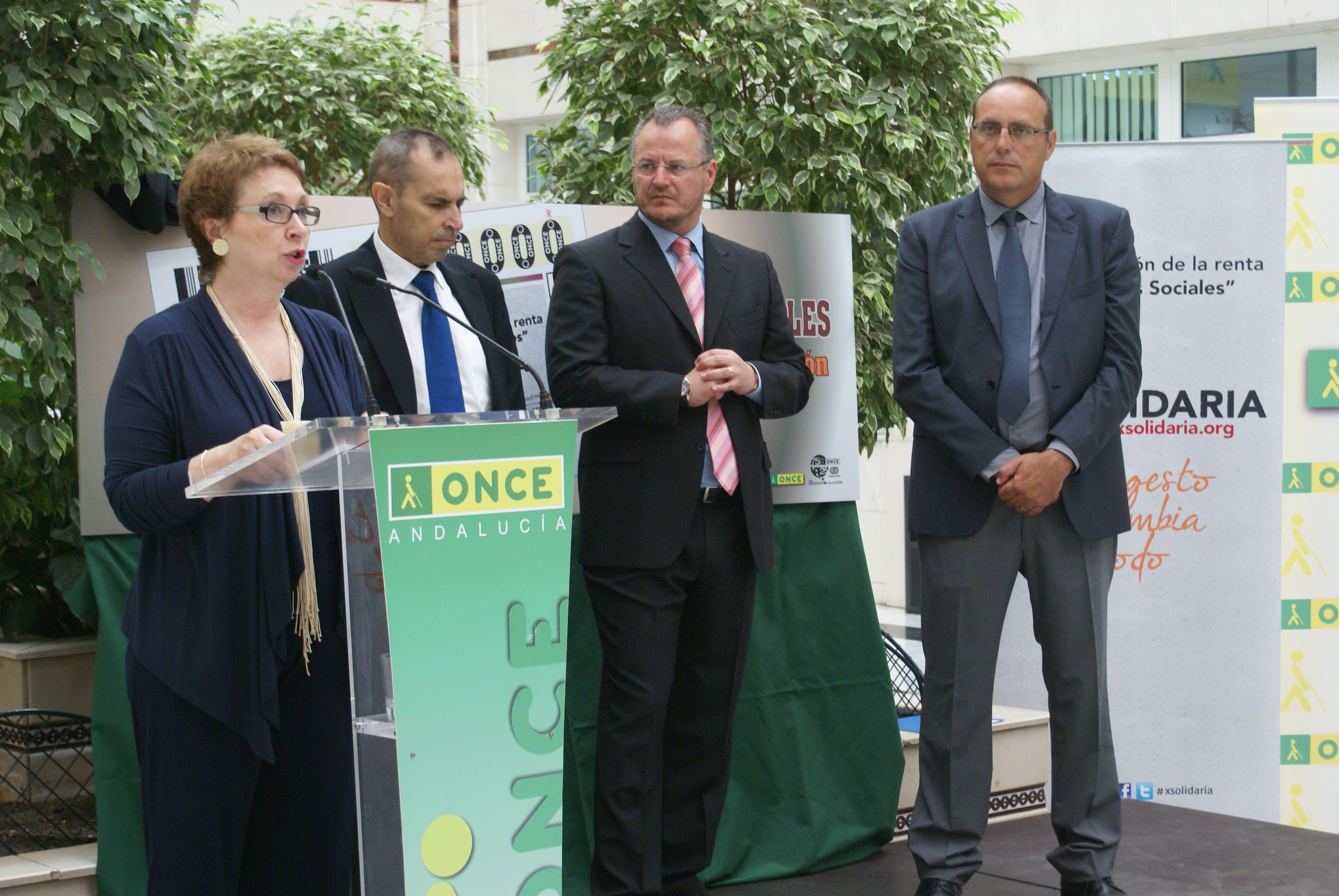 La ONCE dedicó el cupón del lunes 17 de junio a la casilla de Fines Sociales de la Declaración de la Renta. La consejera de Hacienda y Administración Pública, Carmen Martínez Aguayo, el delegado territorial de la ONCE en Andalucía, Ceuta y Melilla, Patricio Cárceles, el presidente del Consejo Territorial, Ventura Pazos, y el presidente de la Mesa del Tercer Sector, Manuel Sánchez, presentaron el pasado jueves 6 en la Delegación Territorial de la ONCE la imagen del cupón con el que la Organización quiere marcar la ‘X’ solidaria.