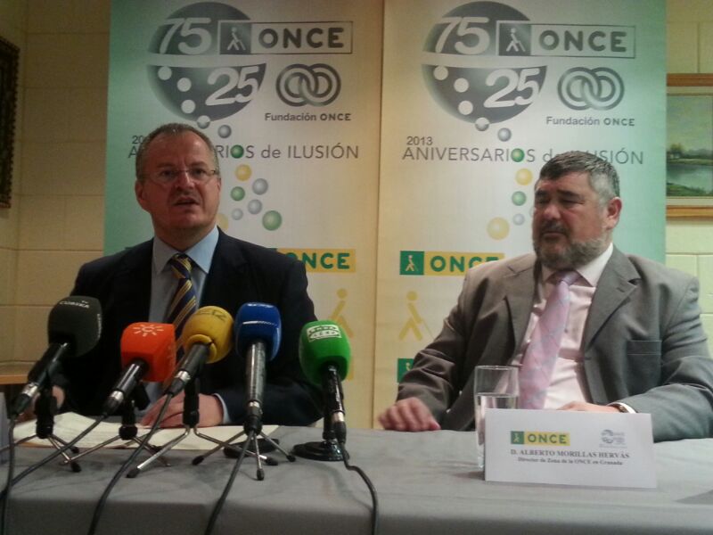 El delegado territorial de la ONCE en Andalucía, Ceuta y Melilla, Patricio Cárceles, junto al director de la ONCE Granada, Alberto Morillas