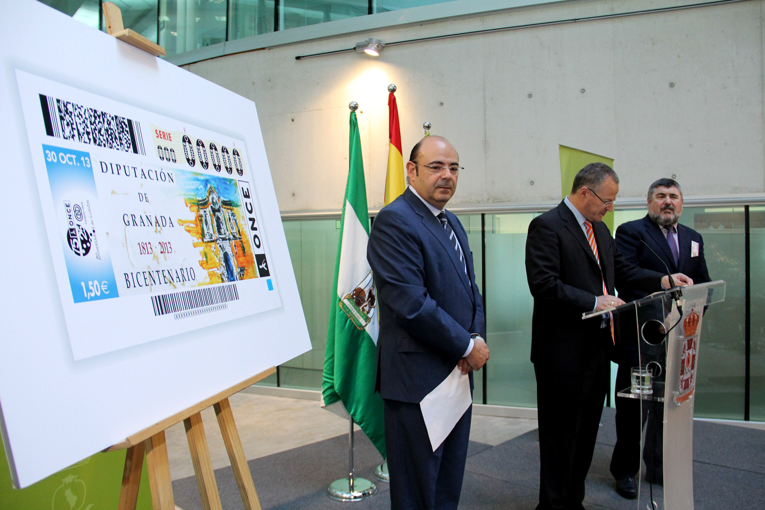 La sede de la Diputación Provincial de Granada acogió el pasado 21 de octubre el acto de presentación del cupón dedicado a su Bicentenario, el del sorteo del 30 de octubre. El presidente de la Diputación de Granada dijo que “la ilusión de todos los días es un sentimiento que se viene asentando desde muchas generaciones con un ADN modélico para afrontar los problemas de la sociedad”. Sebastián Pérez señaló que la ONCE y Diputación de Granada comparten desde sus orígenes la misma vocación de servicio que los demás y juzgo “merecidísima” la concesión a la ONCE del premio Premio Príncipe Asturias de la Concordia.