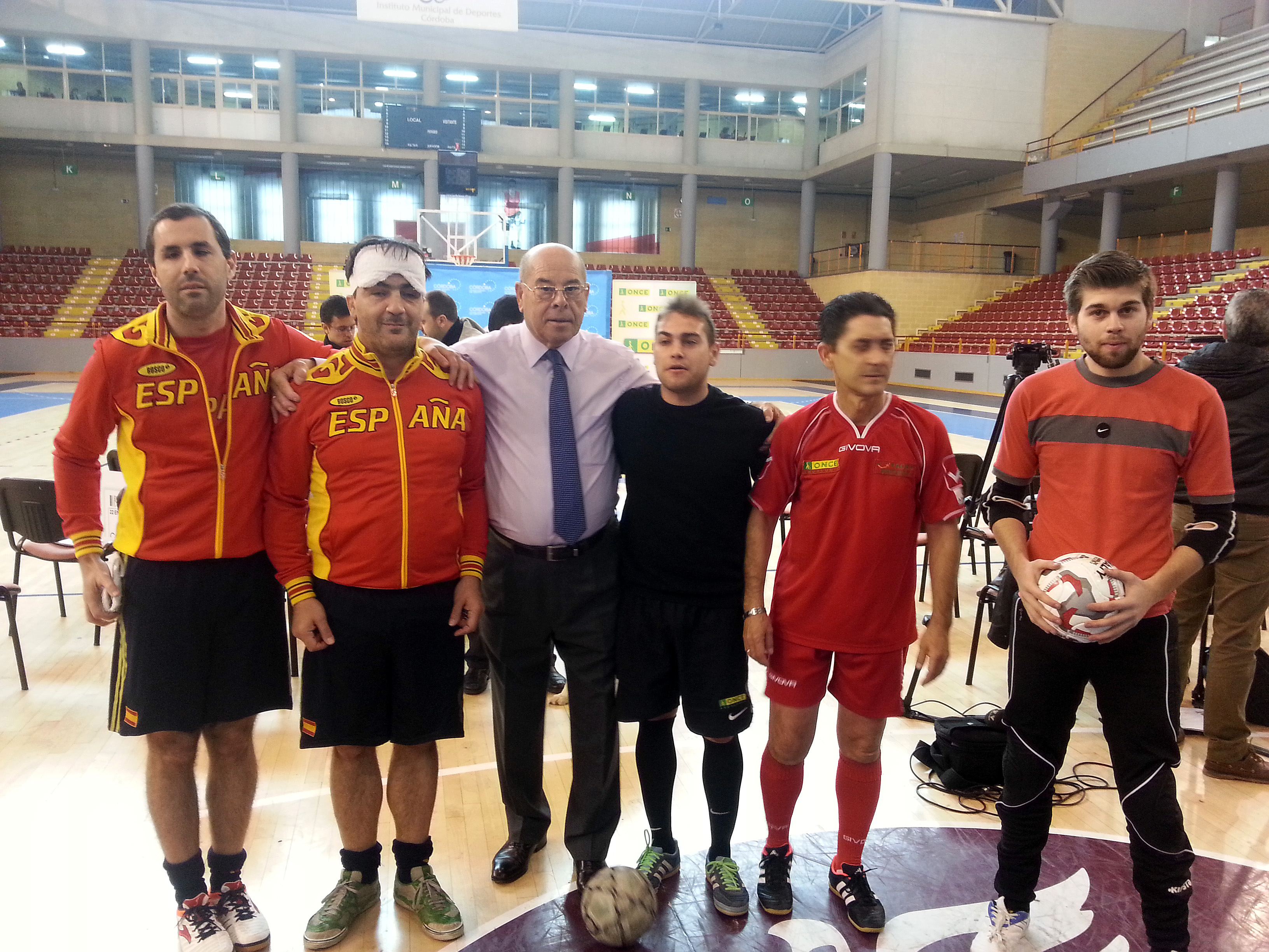 Tras el acto de presentación del cupón, los asistentes pudieron disfrutar de una demostración de fútbol sala adaptado, en la que tuvo especial participación el ex portero y actual concejal de Deportes Miguel Reina, padre de Pepe Reina, portero de la Selección Española, quien se enfrentó valiente a los balones lanzados a portería por Marcelo Rosado y Alfredo Cuadrado, ciegos totales campeones paralímpicos de Europa y bronce en Londres. Por cierto, le marcaron gol.