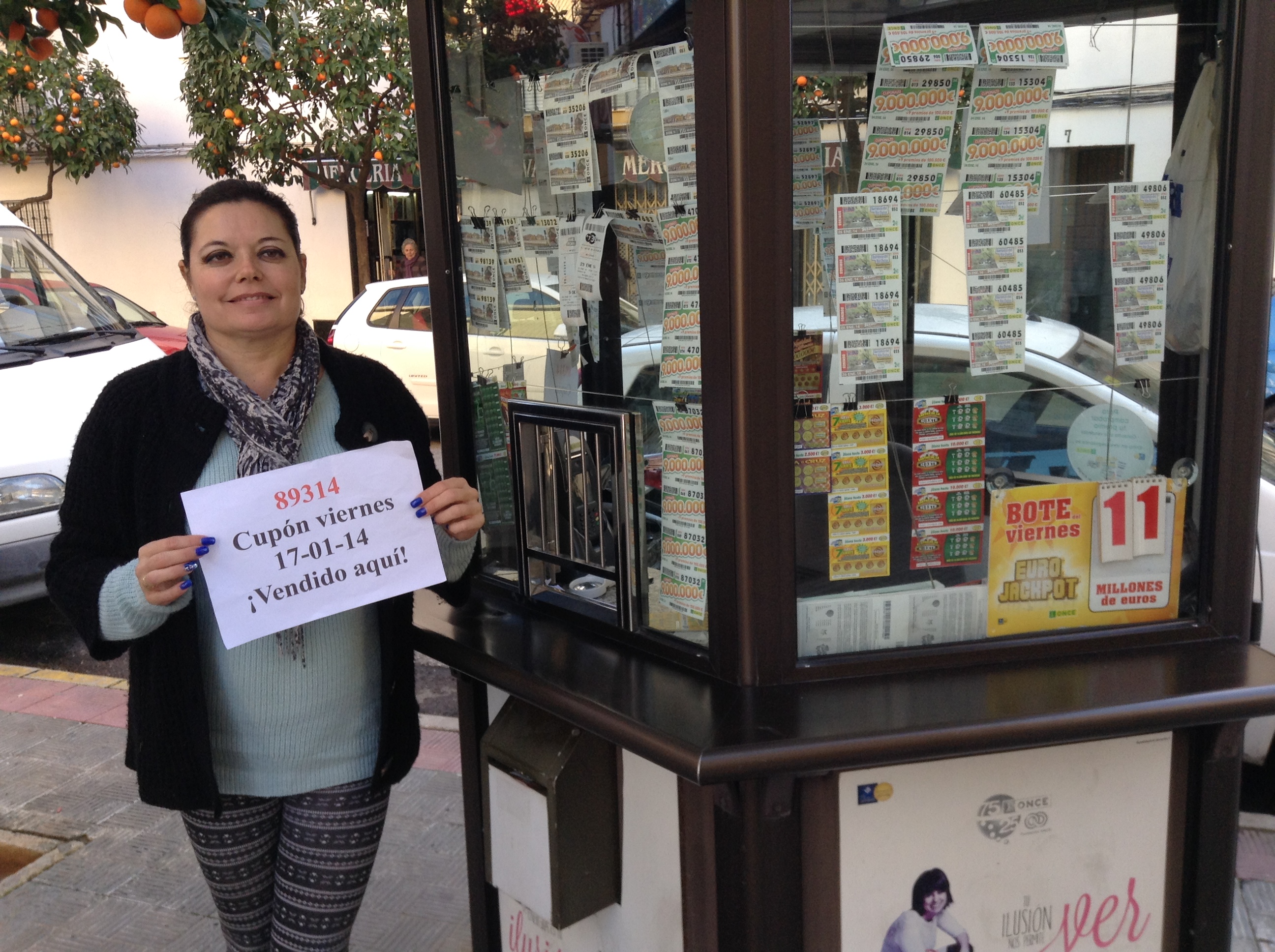 Ana María Real, vendedora y afiliada de la ONCE desde 1985, vendió 41 cupones premiados con 30.000 euros cada uno en el kiosco ubicado en la calle Virgen de los Reyes, 4, en Dos Hermanas el pasado viernes 17 de enero. “Si hubiera hecho mejor día aún hubiera dado más premios”, decía la mañana siguiente al sorteo encantada de la cantidad de dinero repartida entre sus vecinos. “Le ha venido muy bien al barrio porque se ha vendido cuponcito a cuponcito y también hay gente necesitada en esta barriada”, dijo.