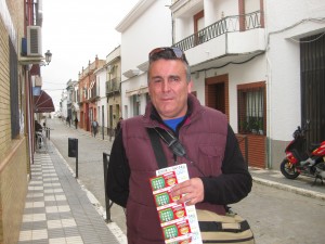 Nicolás Calero Osorno, vendedor y afiliado de la ONCE desde 1999, vendió 30 cupones premiados con 350.000 euros cada uno en la localidad de Escacena del Campo, el pasado miércoles 8 de enero. Declaró sentirse muy orgulloso de haber dado premio puesto que sus clientes suelen ser habituales. «Siempre suelo tener los mismos clientes, personas mayores y humildes, así que estoy muy contento de haber podido repartir premio».