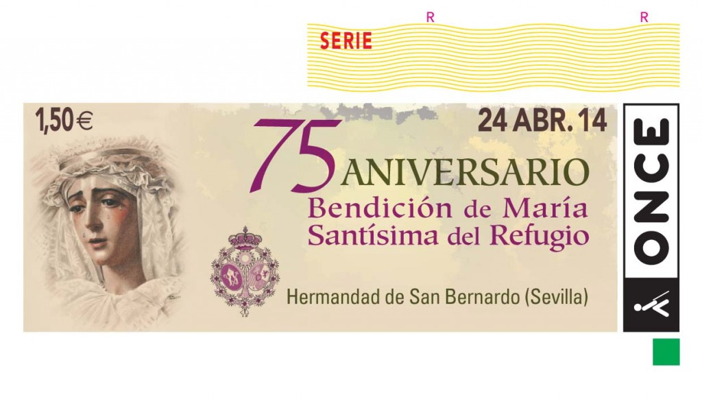 Cupón dedicado al 75 Aniversario de la Bendición de María Santísima del Refugio de la Hermandad de San Bernardo de Sevilla