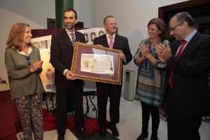 El delegado y el subdelegado territorial de la ONCE en Andalucía, Ceuta y Melilla, Patricio Cárceles y Francisco Arroyo, junto con la directora del CRE, Amparo Cruz, posan junto con alumnos participantes del Concurso Escolar de la ONCE