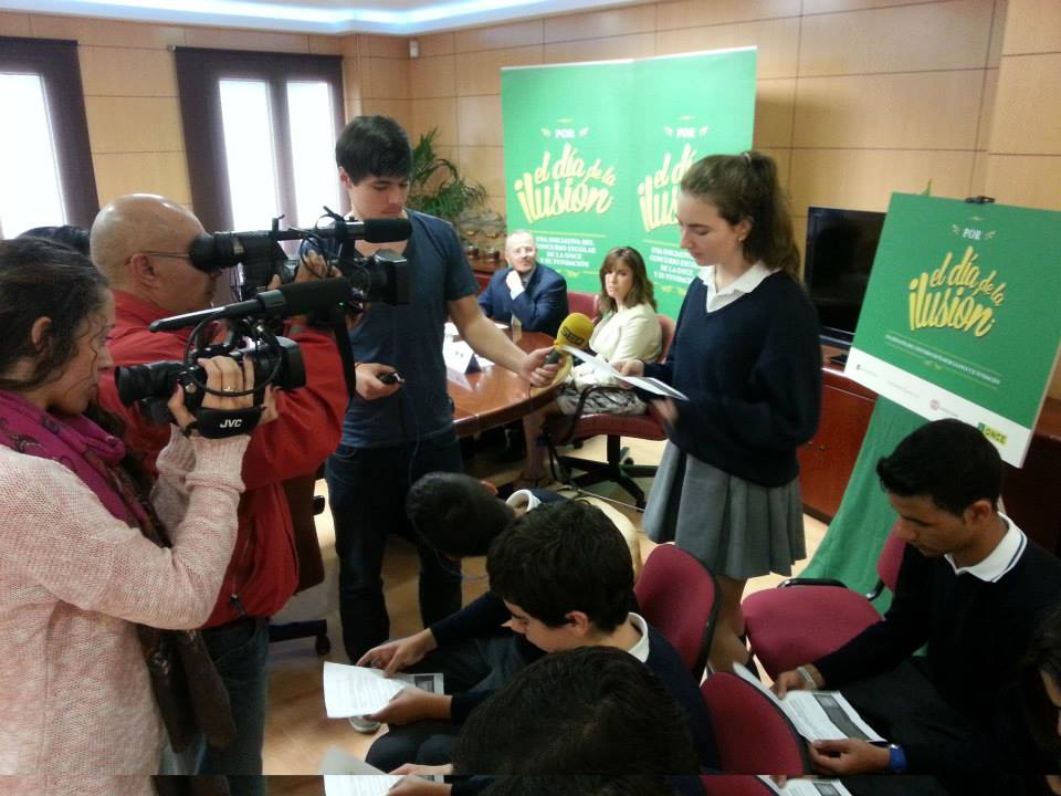 Alumnos participantes del Concurso Escolar de la ONCE, leen el Manifiesto de la Ilusión ante los medios de comunicación