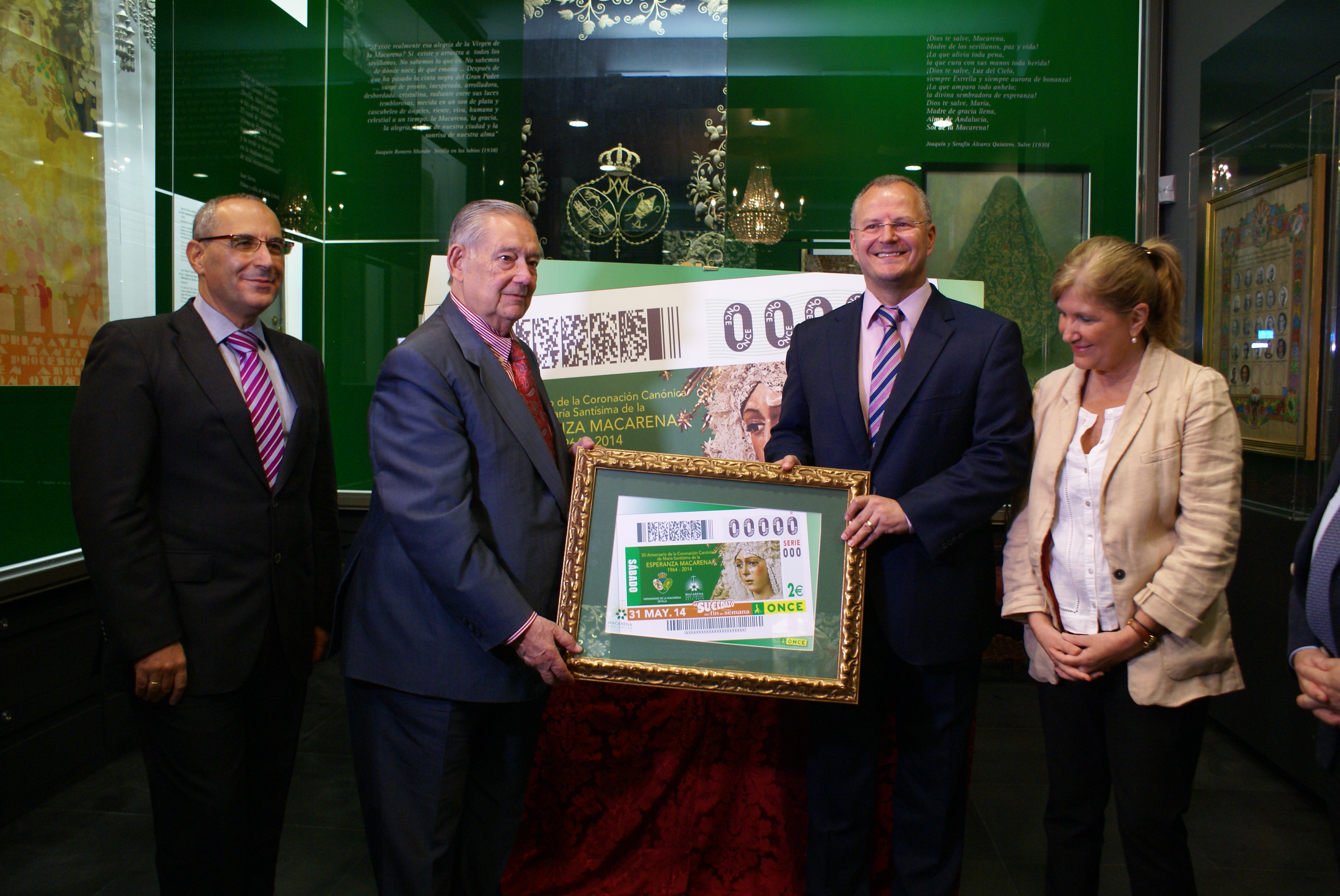 Por su parte, el hermano mayor de la Macarena agradeció a la ONCE las facilidades dadas por la ONCE para llevar esta conmemoración al cupón y su compromiso con la Hermandad. “La ONCE hace una labor social maravillosa y siempre está con Sevilla”, añadió la delegada del distrito del Casco Antiguo del ayuntamiento hispalense Anidea Navarro.