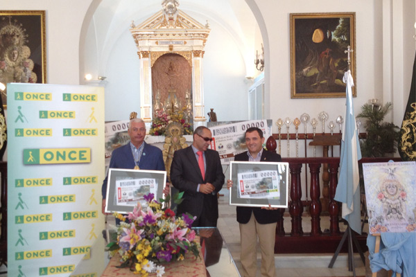El alcalde de Umbrete, Joaquín Fernández, el presidente de la Hermandad, Agustín Pérez y el subdelegado territorial de la ONCE en Andalucía, Ceuta y Melilla, Francisco Arroyo.