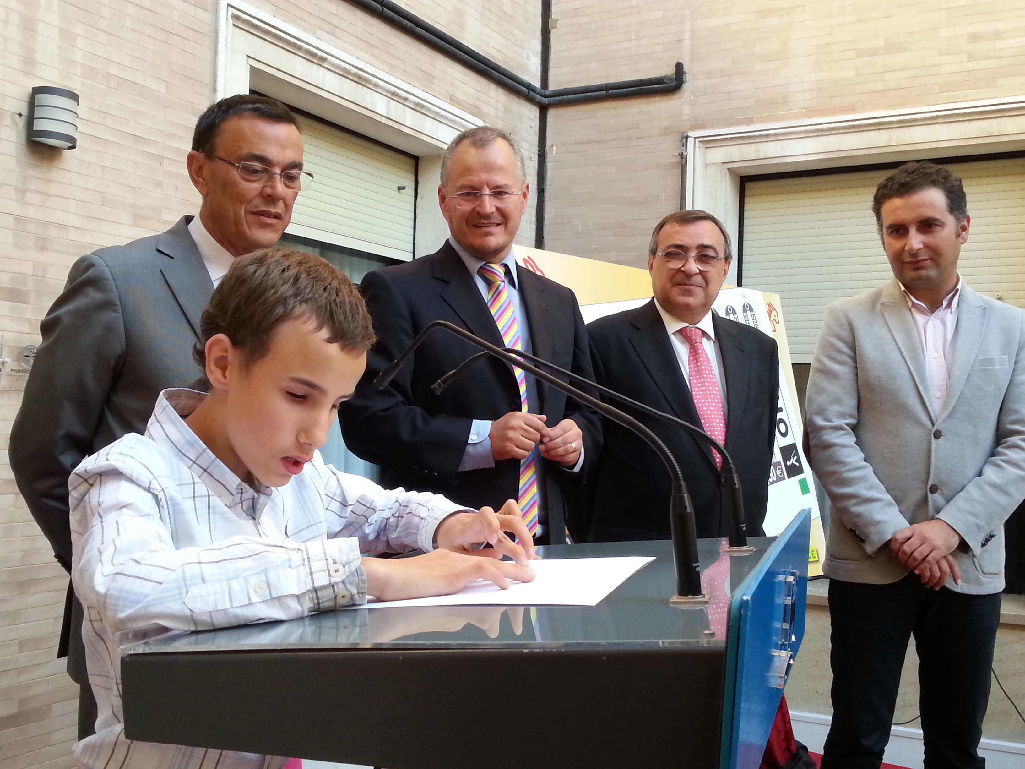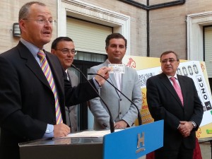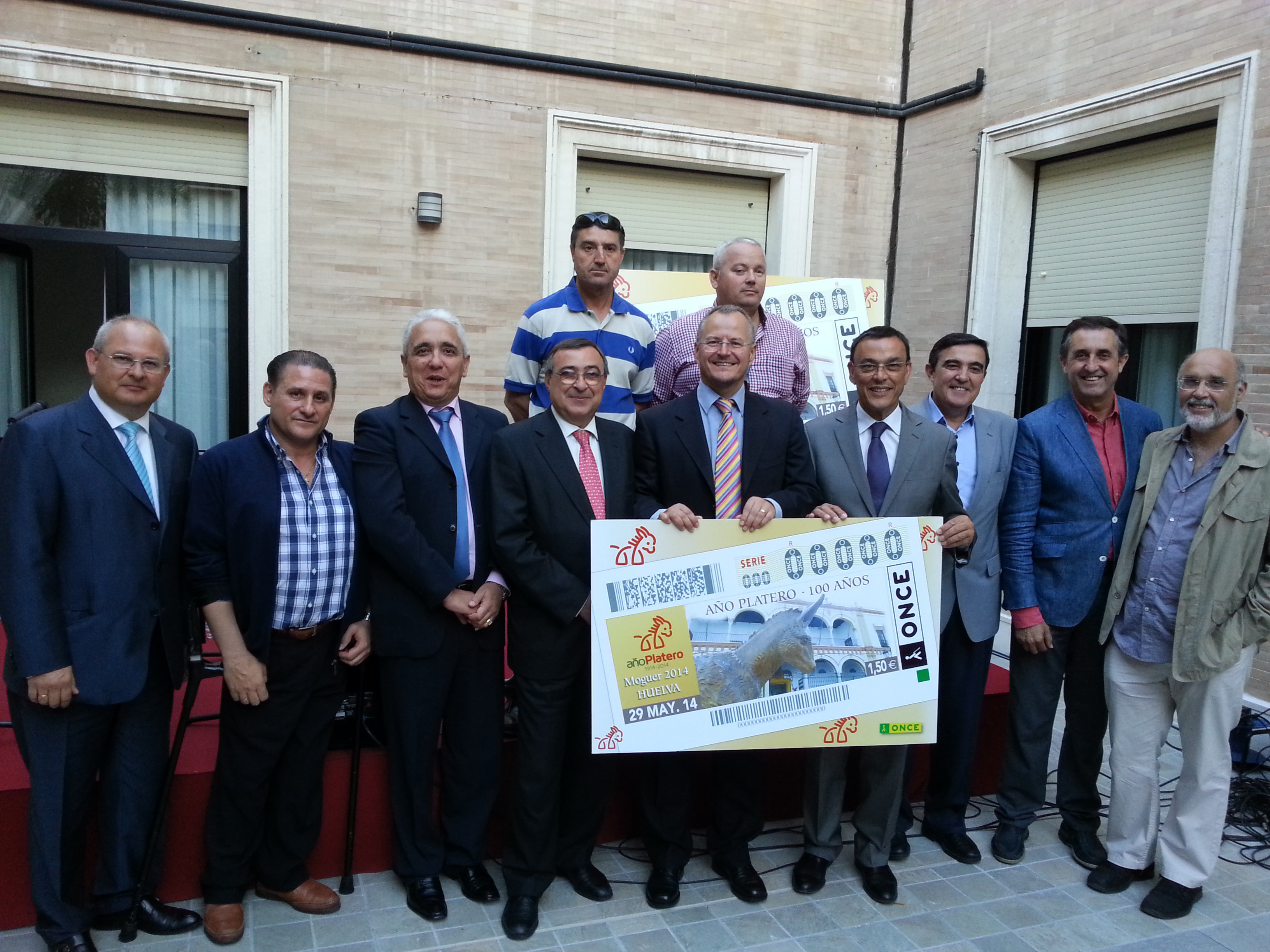 El presidente de la Diputación de Huelva, Ignacio Caraballo, acompañado por el alcalde de Moguer, Gustavo Cuellar, por el delegado territorial de la ONCE en Andalucía, Ceuta y Melilla, Patricio Cárceles, y por el director de la ONCE de Huelva, Manuel Alborch, presentaron el pasado 26 de mayo el cupón con el que la ONCE se suma al Año Platero, en el aniversario de los cien años de la publicación de ‘Platero y yo’.