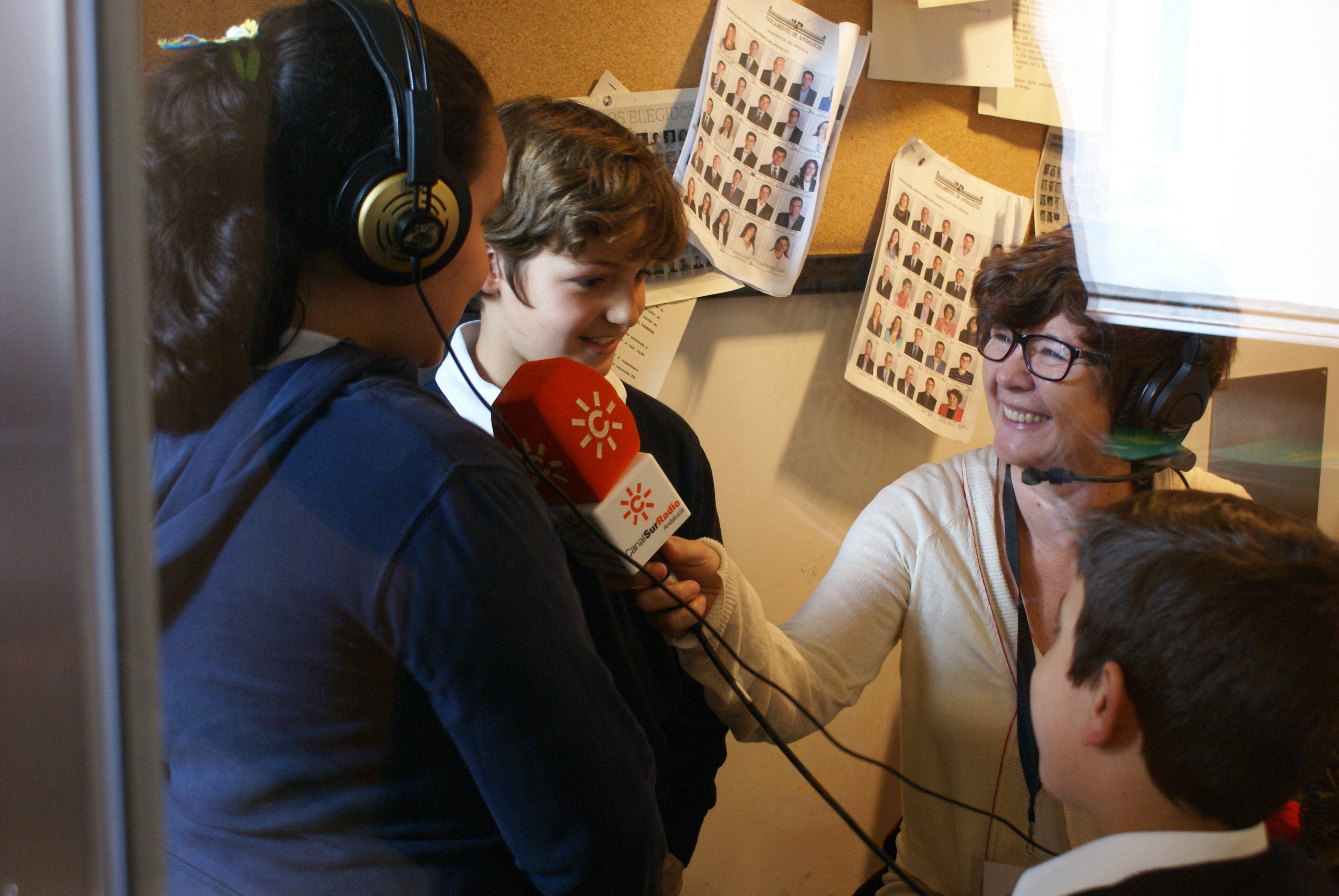 Alumnos del colegio Cardenal Spínola de Sanlúcar la Mayor, durante la entrevista en directo en Canal Sur Radio