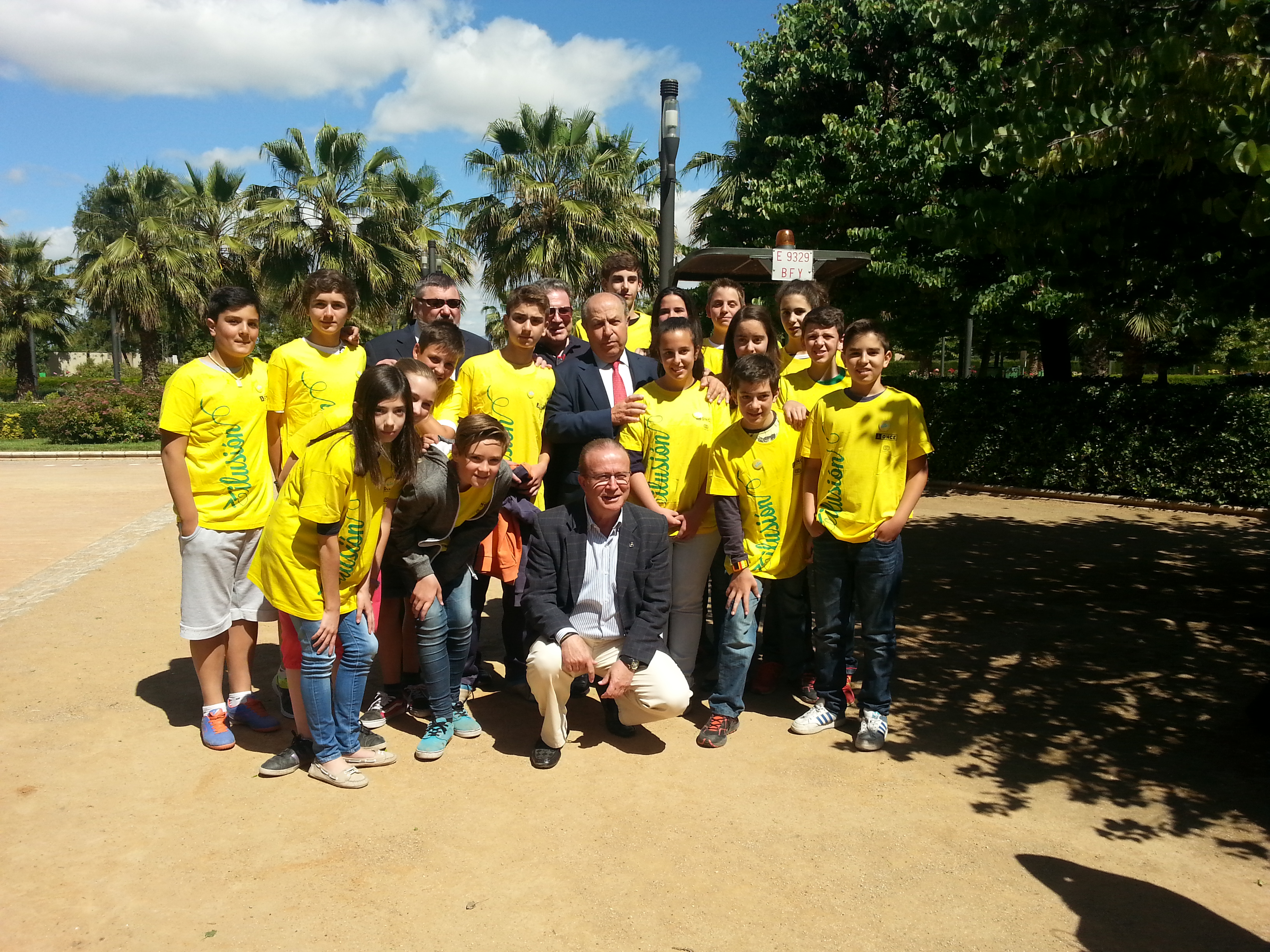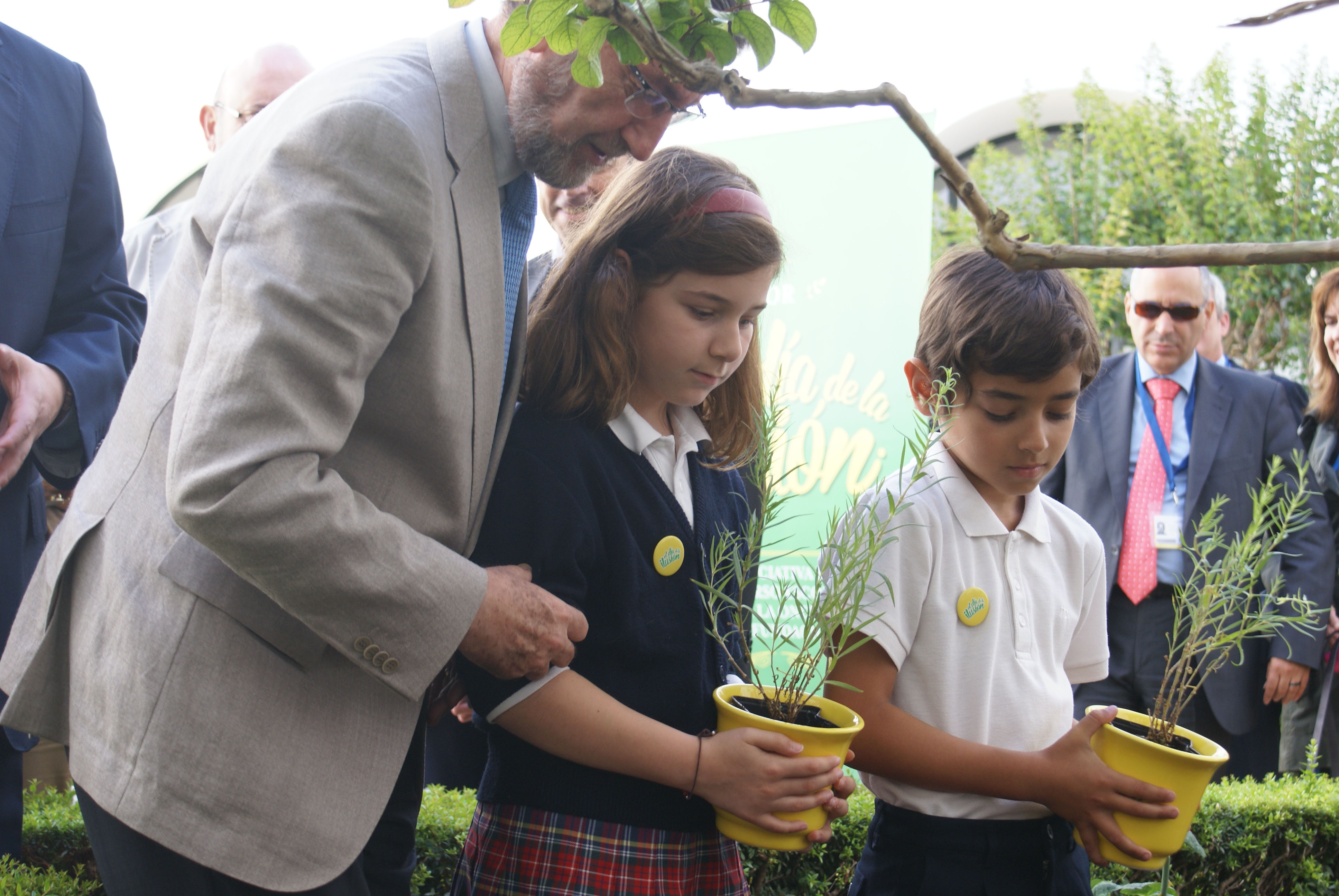 Alumnos del colegio Cardenal Spínola de Sanlúcar la Mayor, ayudan a Manuel Gracia a plantar la ‘Flor de la Ilusión’ en los jardines del Parlamento