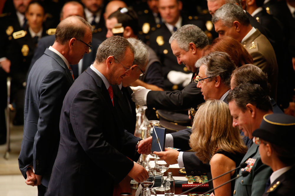 El delegado territorial de la ONCE en Andalucía, Ceuta y Melilla, Patricio Cárceles, recibió la Cruz al Mérito Policial otorgada al personal civil por el Ministerio del Interior, por su colaboración en la lucha contra el juego ilegal, de manos del alcalde de Sevilla, Juan Ignacio Zoido, en el marco de la celebración del Día de la Policía de Andalucía, en un acto presidido por la delegada del Gobierno en Andalucía, Carmen Crespo.