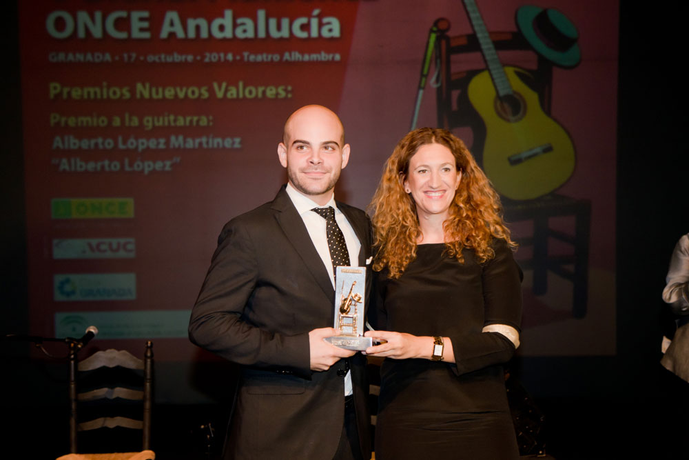 Alberto López, que inició sus estudios de guitarra a los 11 años en el Conservatorio José Salinas donde ya ganó su primer concurso como solista a los 14 años, ha compartido cartel con artistas de la talla de Tomatito, Estrella Morente o El Pele. “Para mi este premio es muy importante por por ser mi tierra y por ser un reconocimiento a tantas horas de trabajo encerrado en una habitación estudiando que nadie ve”, decía. Alberto López se mostró “feliz” de compartir el premio con artistas con discapacidad “que demuestran mucho arte al superar sus limitaciones a través del flamenco”. En Granada interpretó una granaina acompañado al cante por Álvaro Rodríguez y unas alegrías como solista.