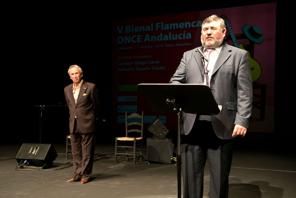 “Granada solo tiene una salida y es hacia las estrellas”, las palabras de Lorca en boca del director de la ONCE en Granada, Alberto Morillas, inauguraron en la ciudad de la Alhambra la V edición de la Bienal Flamenca ONCE Andalucía. El jurado ha premiado a la cantaora sevillana Montserrat Estepa Amador, Montse Amador, como mejor artista con discapacidad; al granadino de Baza, Alberto López, como mejor guitarra, y al malagueño Andrés Armero, por el mejor cante. En la gala se rindió homenaje al cantaor de La Puebla de Cazalla (Sevilla), Diego Clavel, enciclopedia viva del flamenco y autor de cinco antologías, quien actuó acompañado por la bailaora gaditana Rosario Toledo.