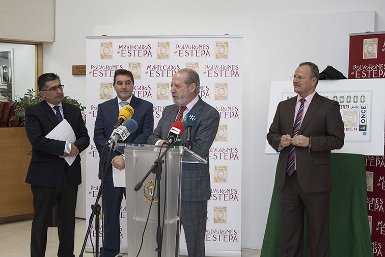 El presidente de la Diputación Provincial, Fernando Rodríguez Villalobos, presidió en el Ayuntamiento de Estepa el acto de presentación del cupón, celebrado el 1 de diciembre, y en el que participaron el alcalde estepeño, Miguel Fernández, el presidente del Consejo Regulador, Eusebio Olmedo; y Patricio Cárceles junto a Francisco Arroyo en representación de la ONCE Andalucía.