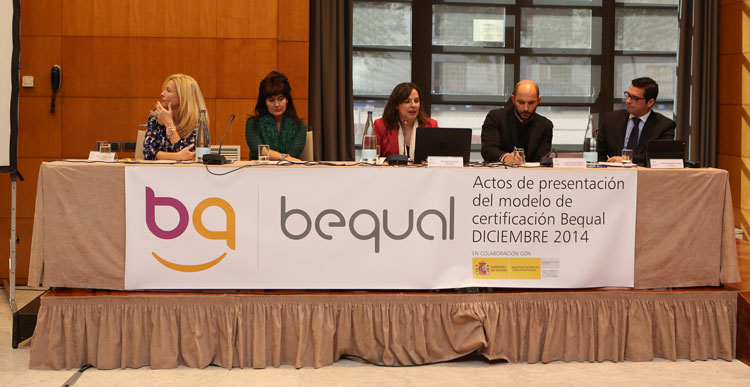 La Fundación Bequal ha presentado en el Hote l Meliá Sevilla, el Modelo de Certificación Bequal, la más prestigiosa acreditación que determina el grado de compromiso de la empresa en materia de Responsabilidad Social y Discapacidad, en un acto impulsado por la Dirección General de Trabajo Autónomo del Ministerio de Empleo y Seguridad Social.