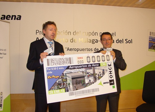 Cristóbal Martínez y el director del Aeropuerto de Málaga-Costa del Sol, Salvador Merino, presentaron la imagen de este cupón que reproduce la terminal T3. Cristóbal Martínez no desaprovechó la ocasión para ensalzar el importante trabajo que realiza AENA en favor de organizaciones representativas de las personas con discapacidad.