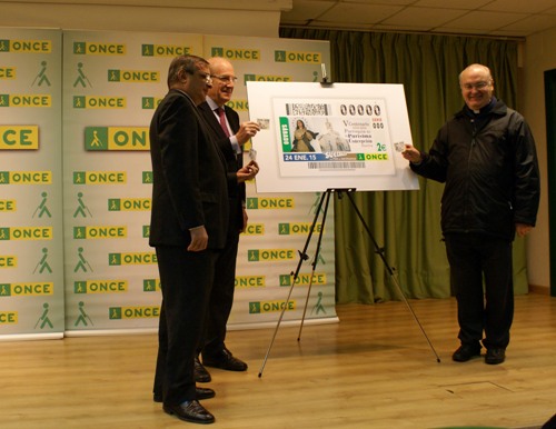 El 24 de enero hubo también protagonismo andaluz en los sorteos de la ONCE. El motivo, los 500 años de la parroquia de la Purísima Concepción y el día del patrón de Huelva. El director de la ONCE en Huelva, Manuel Alborch, presentó la imagen del cupón al alcalde de Huelva, Pedro Rodríguez, y al párroco de esta iglesia, Diego Capado, en un acto que tuvo lugar en la sede de la ONCE.