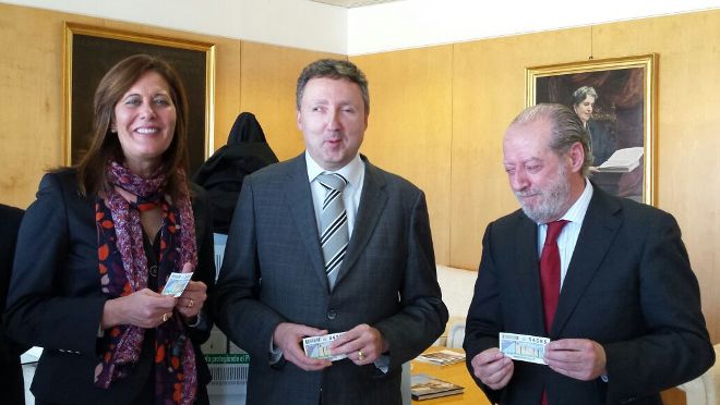 Presentación del cupón conmemorativo del 50 aniversario del Patromonio Histórico de Osuna en la Diputación Provincial de Sevilla