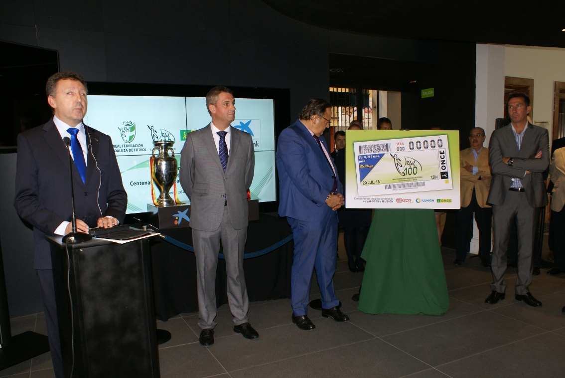 El delegado territorial de la ONCE en Andalucía, Ceuta y Melilla, Cristóbal Martínez, y el presidente de la Real Federación Andaluza de Fútbol, Eduardo Herrera, presentaron la imagen del cupón en un acto en el que participó el director territorial de La Caixa en Andalucía occidental, Rafael Herrador, acompañado por una amplia representación del deporte rey en la Comunidad Autónoma. Acudieron al acto los presidentes del Sevilla Fútbol Club y del Real Betis Balompié, José Castro y Juan Carlos Ollero, los futbolistas profesionales andaluces Carlos Marchena y Juanito, y los técnicos Manuel Caparrós y Manolo Jiménez.