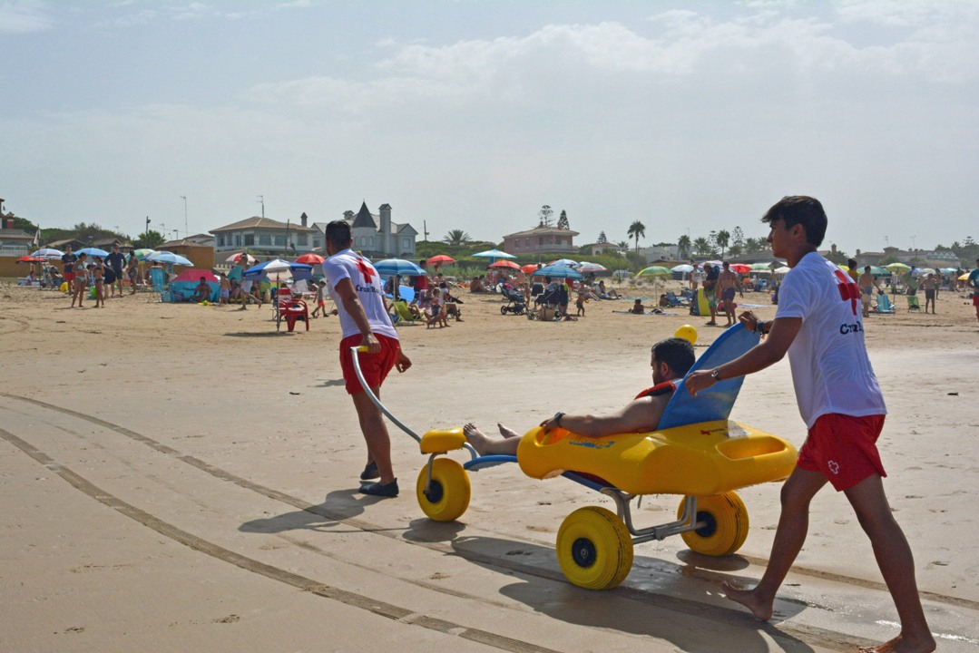 Cruz Roja Española, que cuenta con vigilancia y salvamento en 343 playas del litoral, dispone actualmente del servicio de baño adaptado en 145 playas.