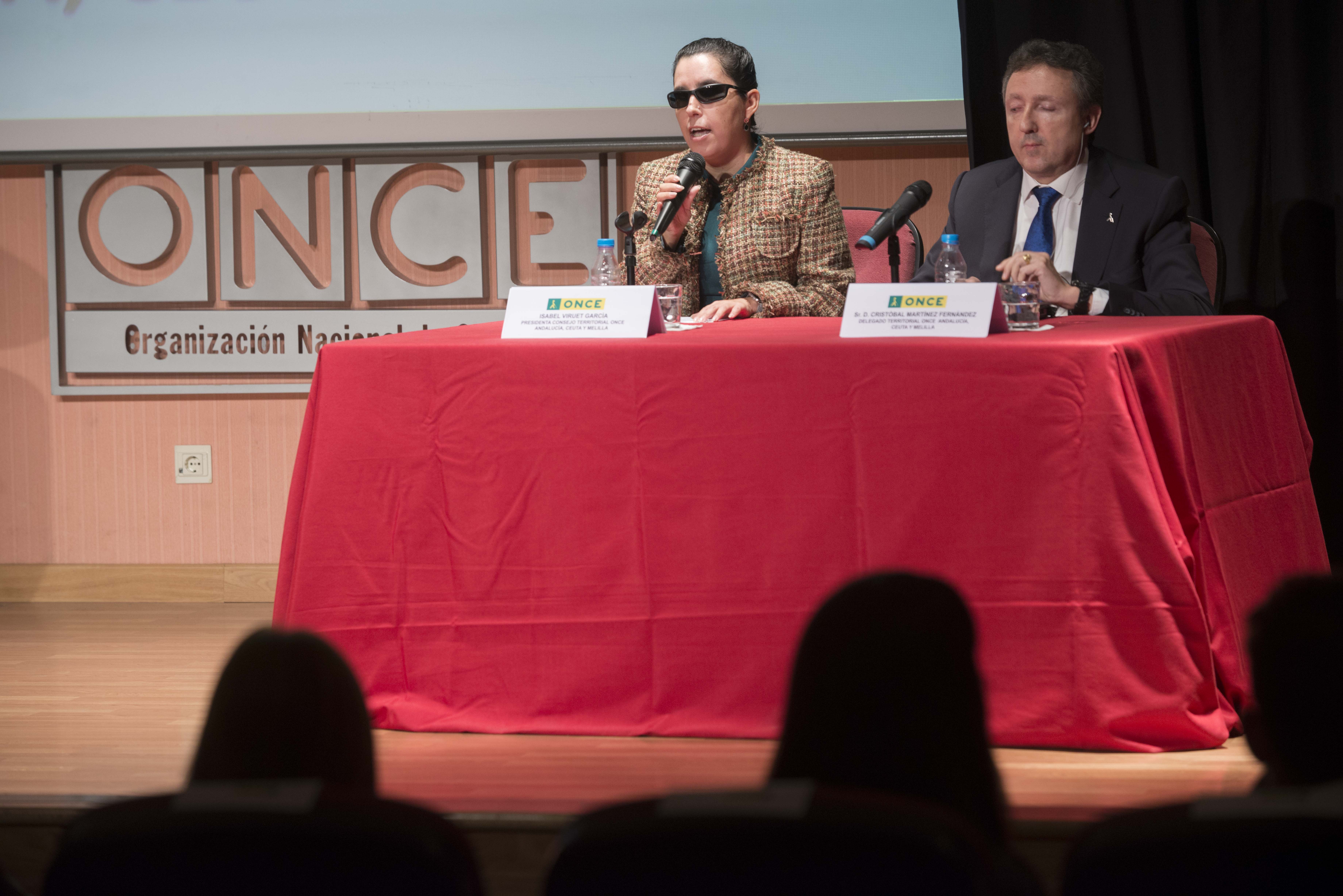 Isabel Viruet, presidenta del Consejo Territorial de la ONCE en Andalucía y Cristóbal Martínez, delegado territorial de la ONCE en Andalucía