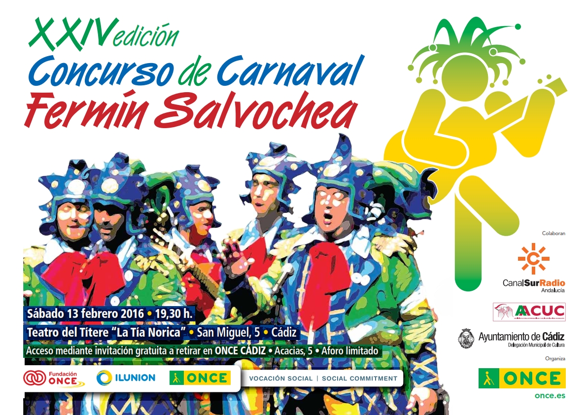 La XXIV edición del Concurso Fermín Salvochea con el que la ONCE premia las letras más solidarias y con mayor compromiso social del Carnaval de Cádiz 2016 ha entrado en su recta final. 24 de las 53 agrupaciones que se han presentado este año al certamen participarán desde el próximo lunes al miércoles 10 en la peña La Perla para aspirar al primer premio.
