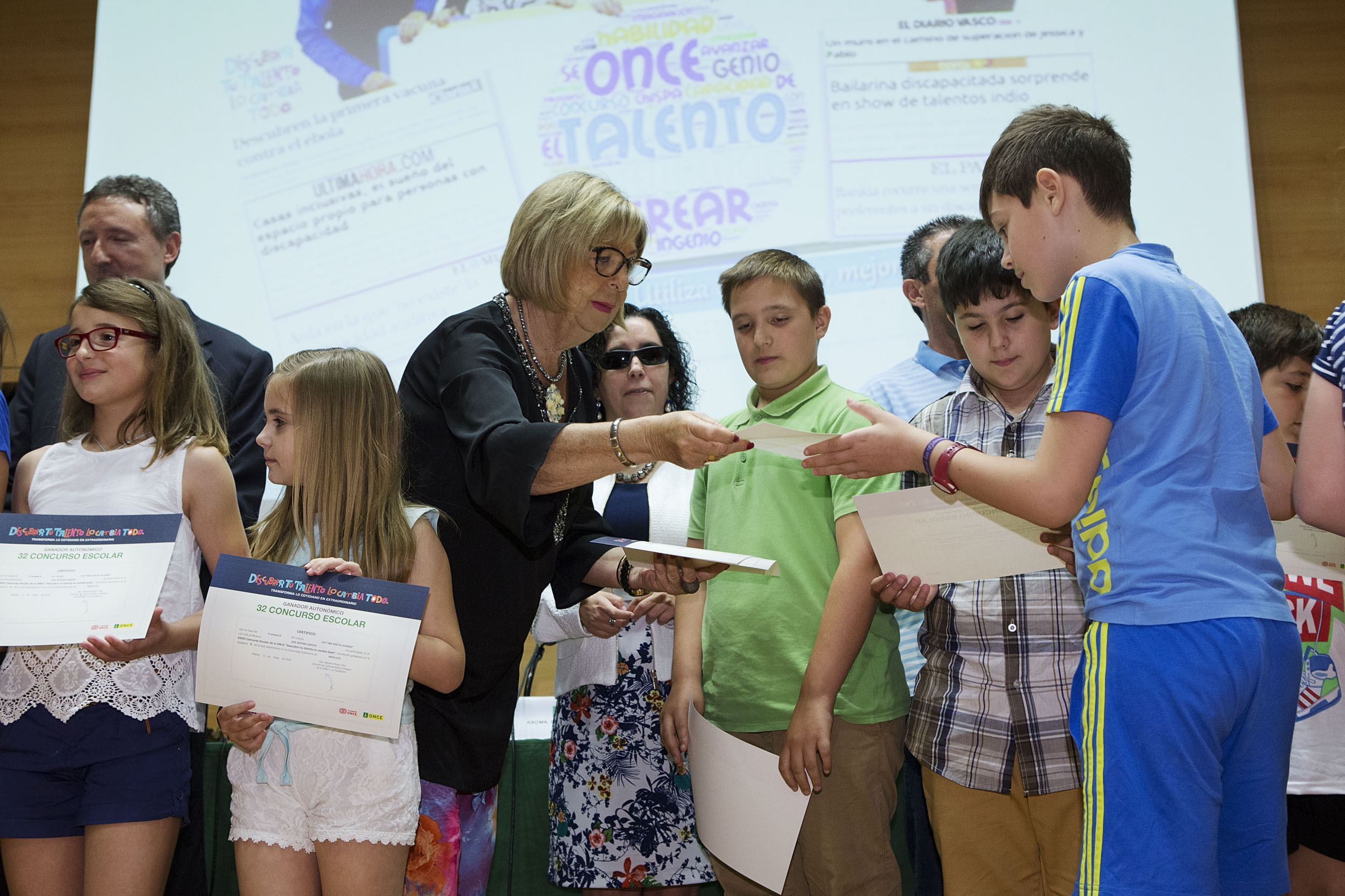 La consejera de Educación de la Junta de Andalucía, Adelaida de la Calle, presidió el día 2 la entrega de los premios autonómicos del 32 Concurso Escolar de la ONCE y su Fundación en Andalucía, que ha movilizado este año a 33.666 alumnos andaluces. Los ganadores este año han sido alumnos de 4º de Primaria de Villacarrillo (Jaén), de 5º de Primaria de La Puebla de los Infantes (Sevilla), ganadores también a nivel nacional en su categoría, y 2º de la ESO de Sevilla. Otro centro andaluz de Córdoba también recibió de manos de la consejera el premio como ganadores en la fase nacional en la modalidad de Educación Especial.
