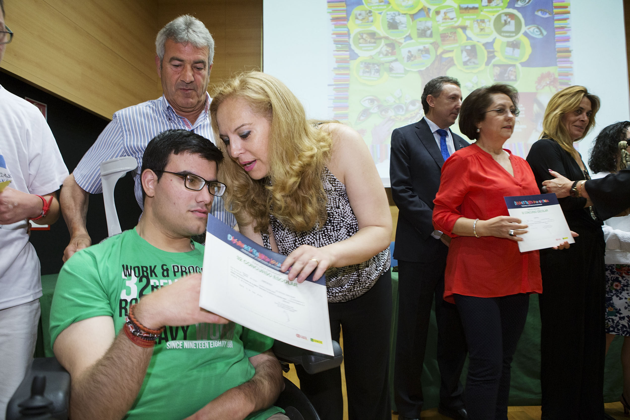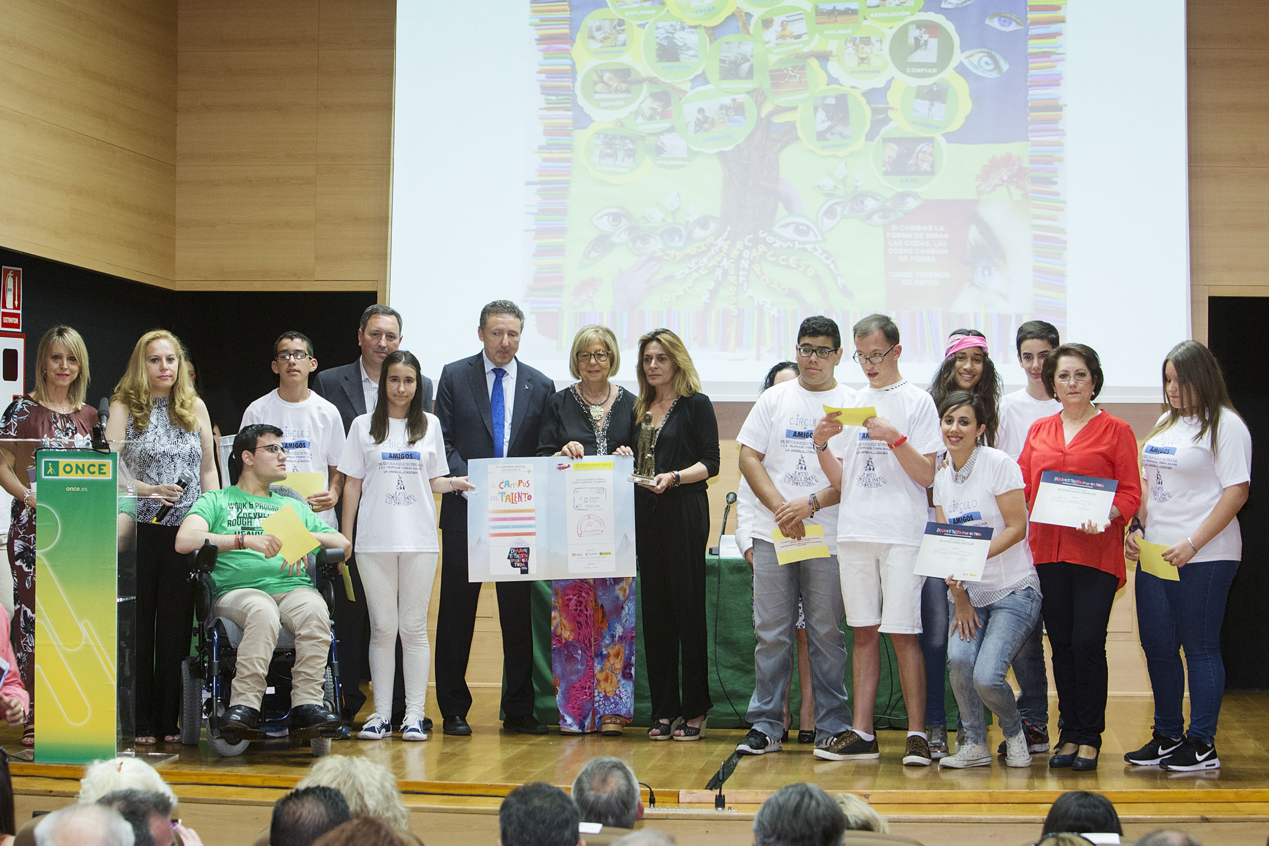 «Si Cambias la Forma de ver las cosas, las cosas cambian de forma. TODOS TENEMOS TALENTOS», es el lema del trabajo que ha ganado a nivel nacional en Educación Especial, un gráfico en forma de árbol en el que los alumnos cordobeses han querido mostrar que lo más importante en la vida es la perseverancia y el amor que ponemos en lo que hacemos. Una mano sostiene ese árbol como una metáfora de la voluntad, la que agarra, el esfuerzo y las raíces el soporte para desarrollar capacidades y talentos, las miradas la posibilidad de cambiar la forma de ver.