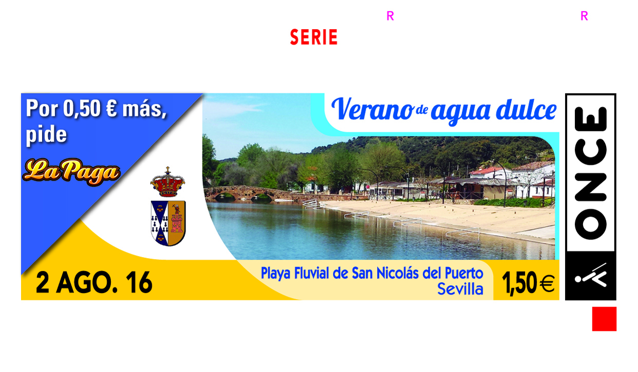 Cupón del Sorteo del 2 de agosto, dedicado a la playa de San Nicolás del Puerto (Sevilla)