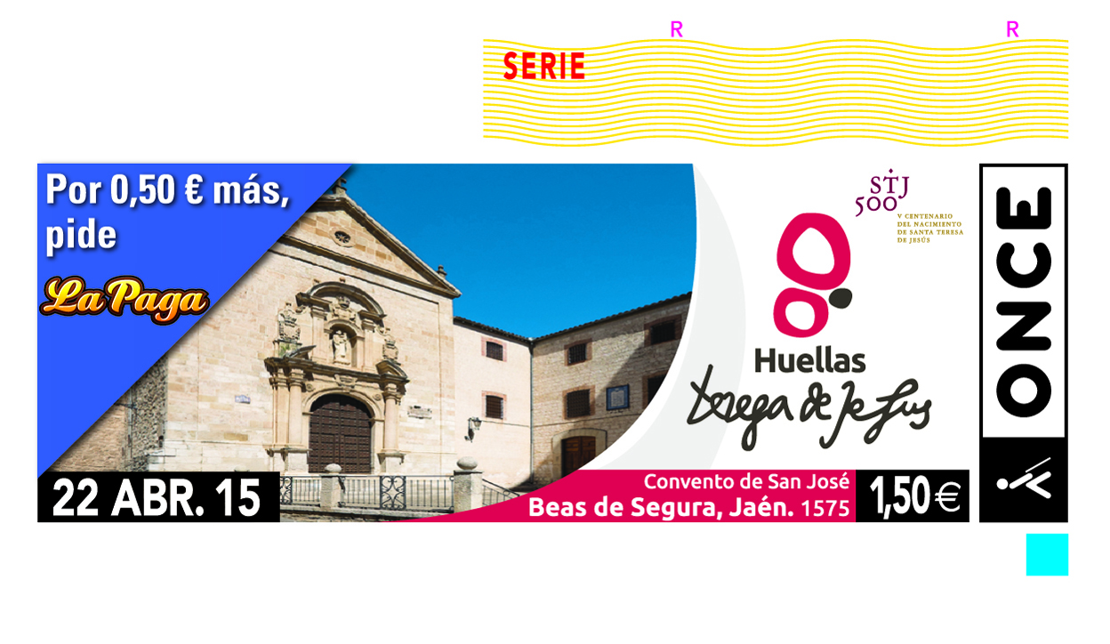 Cupón dedicado al convento de San José en Beas de Segura (Jaén) dentro de la serie dedicada al V Centenario del nacimiento de Santa Teresa de Jesús