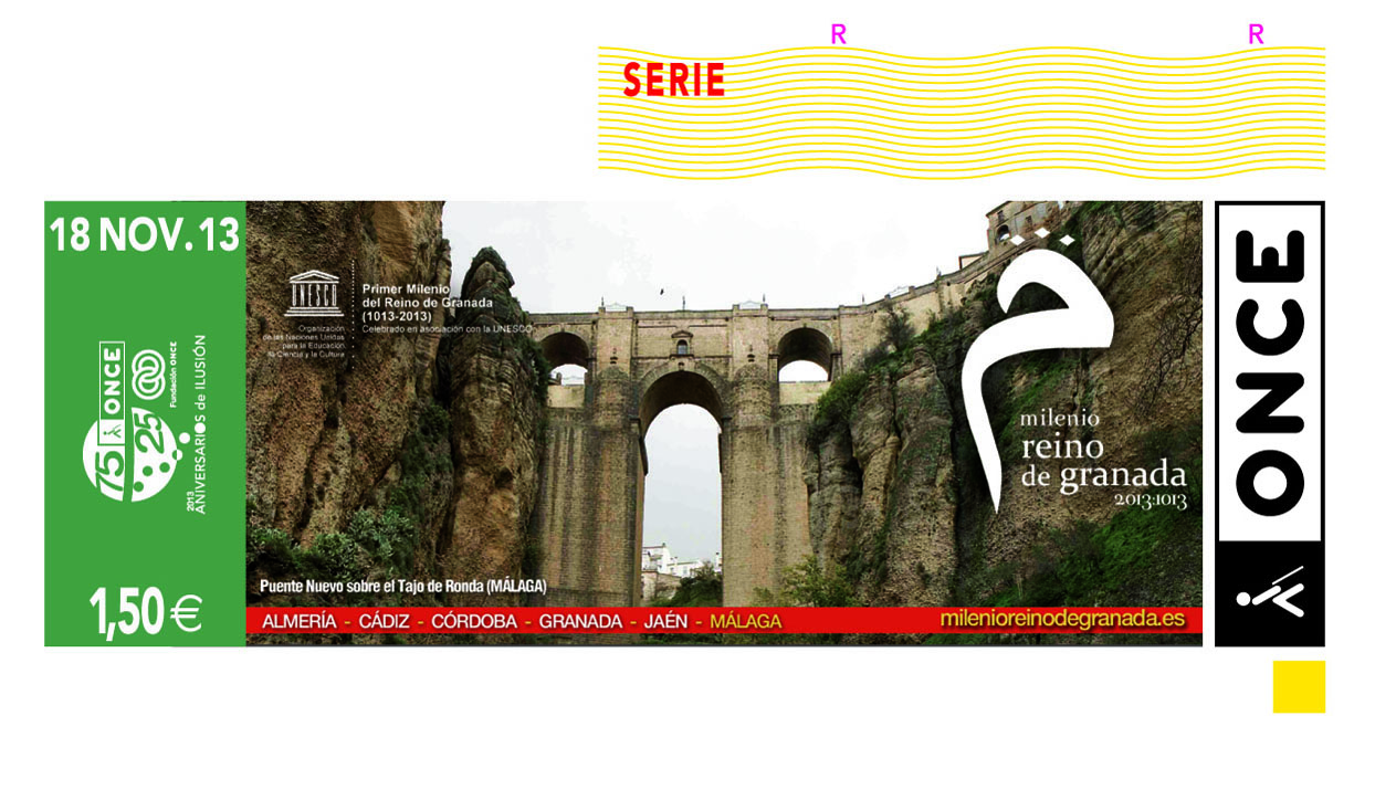 Cupón dedicado al puente nuevo sobre el Tajo de Ronda, dentro de la serie monográfica del Milenio del Reino de Granada