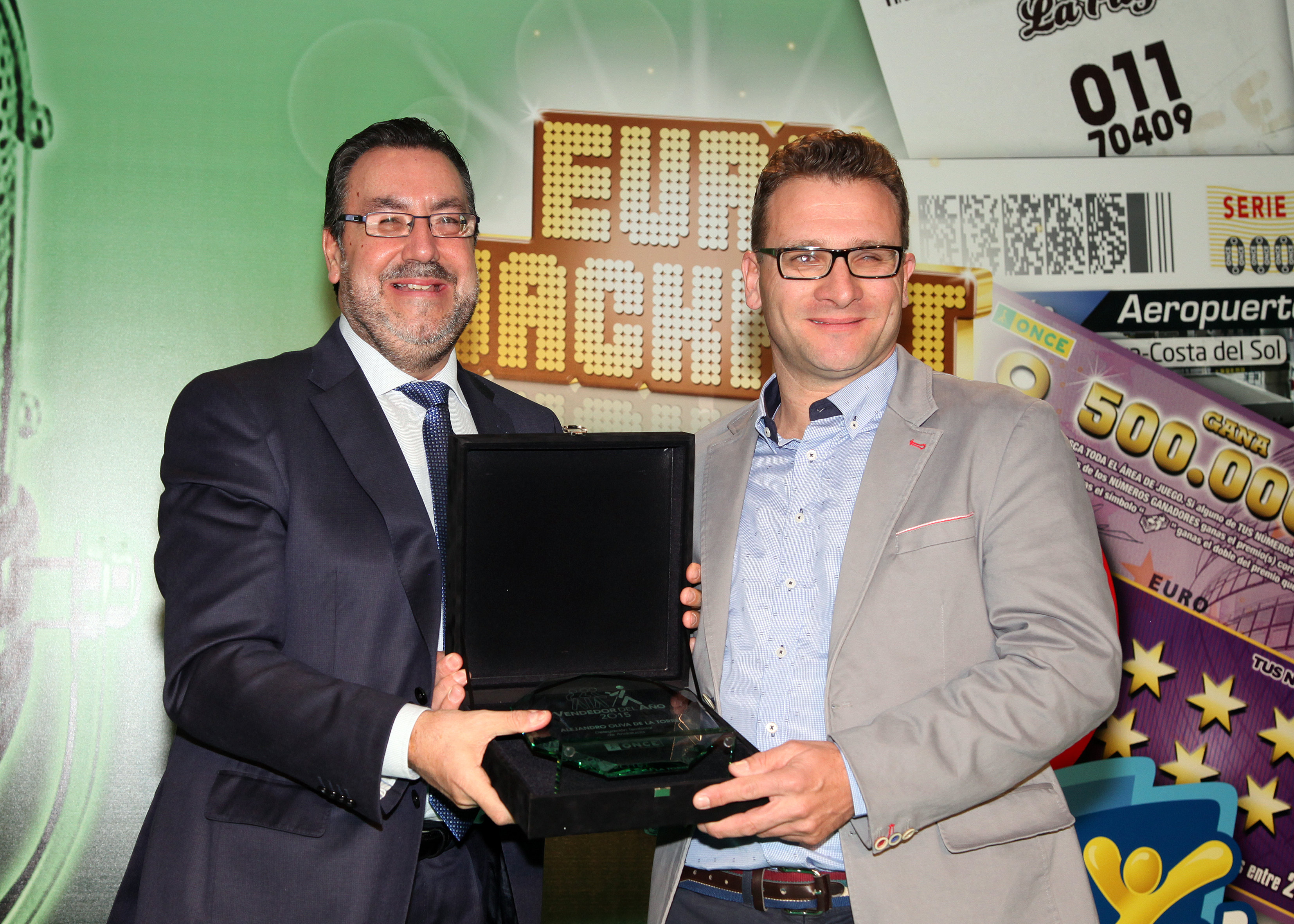 El presidente de la ONCE y su Fundación, Miguel Carballeda, reconoce a Alejandro Oliva como vendedor del año en el ámbito de la Delegación Territorial de Andalucía / Reportaje gráfico: Javier Regueros.