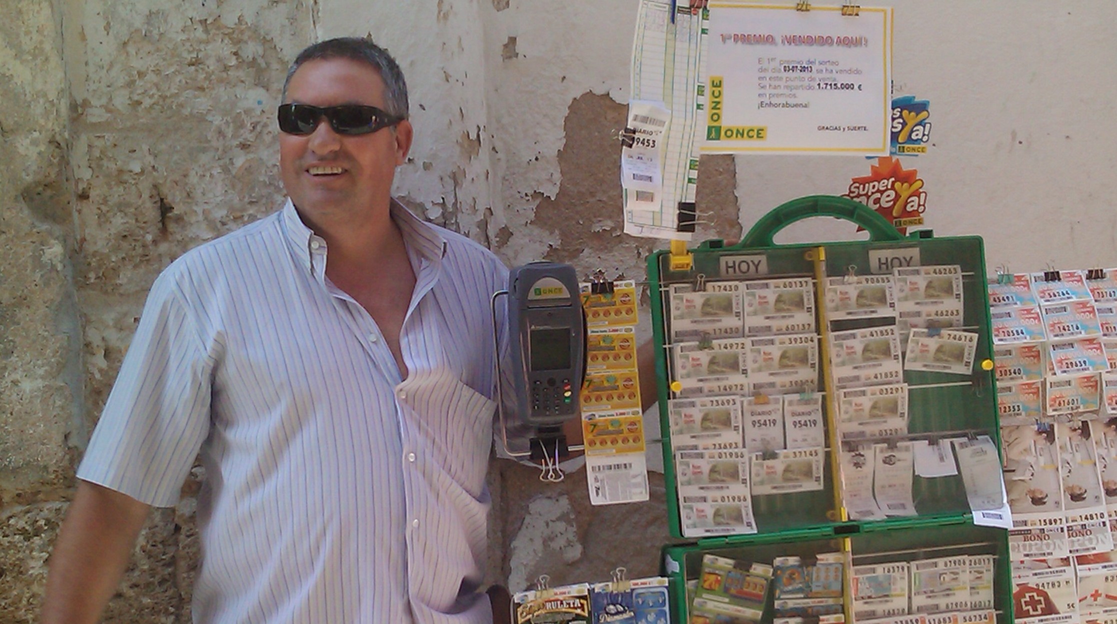 Con sólo 35 años de edad y once años como vendedor de la ONCE declaró sentirse nervioso. “Jamás soñé con dar el Cuponazo, no se me había pasado por la cabeza, pero dar tanta suerte a gente que lo necesita y mucha gente en paro, porque ha estado muy repartido, me hace más ilusión que si me hubiera tocado a mí”, añadía.